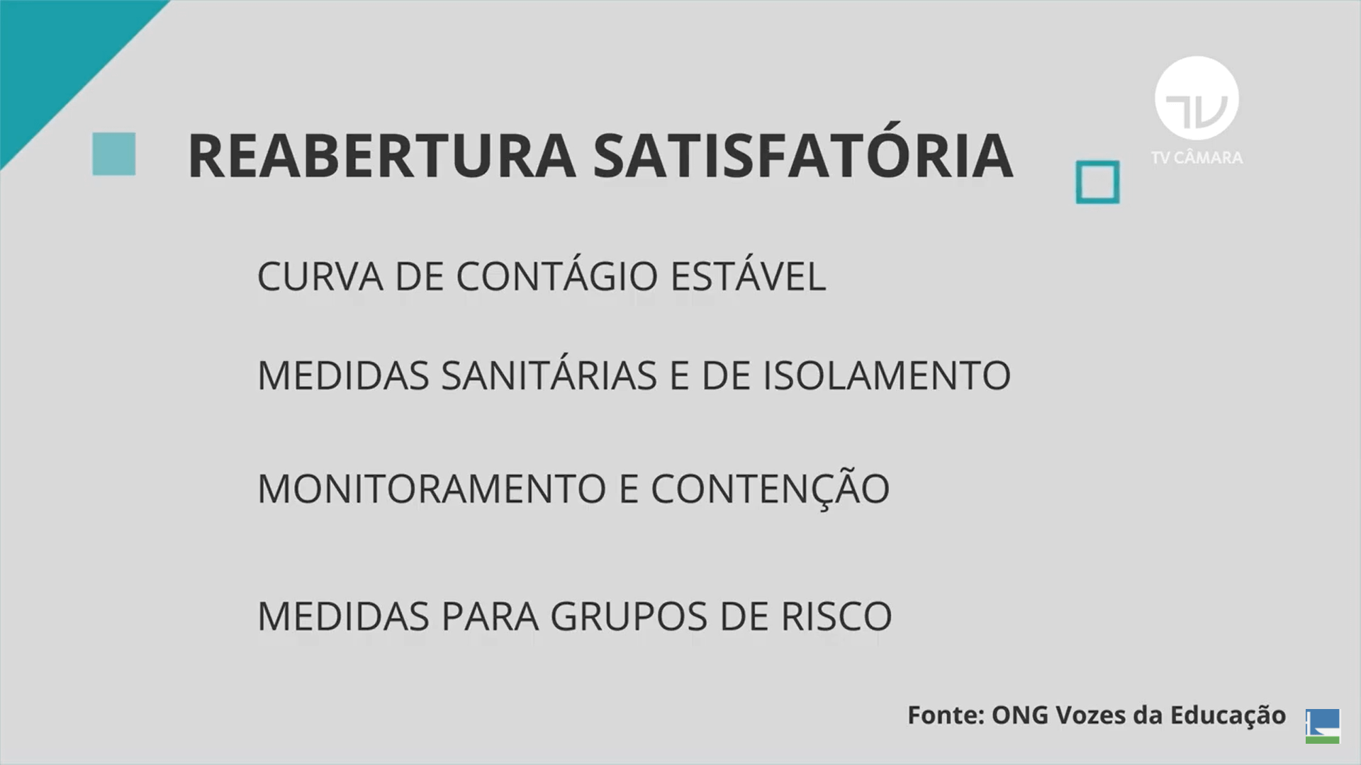 O Vozes da Educação foi convidado a apresentar o “Levantamento Internacional de Retomada das Aulas Presenciais” (elaborado em agosto/2020) na audiência pública da Comissão Externa da Câmara dos Deputados, que ocorreu no dia 09 de setembro de 2020, em que foram discutidos os protocolos para o retorno às atividades presenciais. Na ocasião, o Vozes pôde trazer para os parlamentares os principais achados da sistematização.